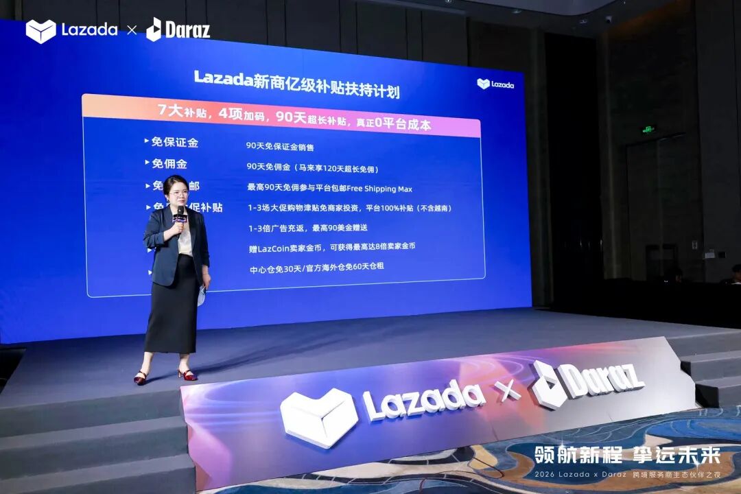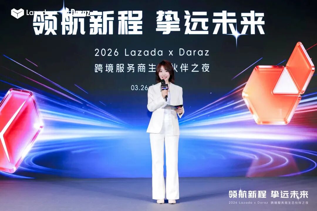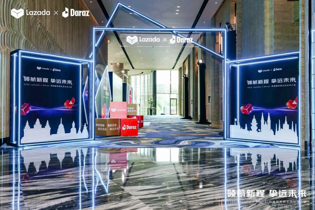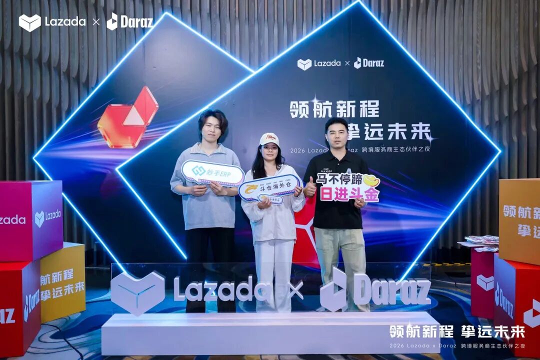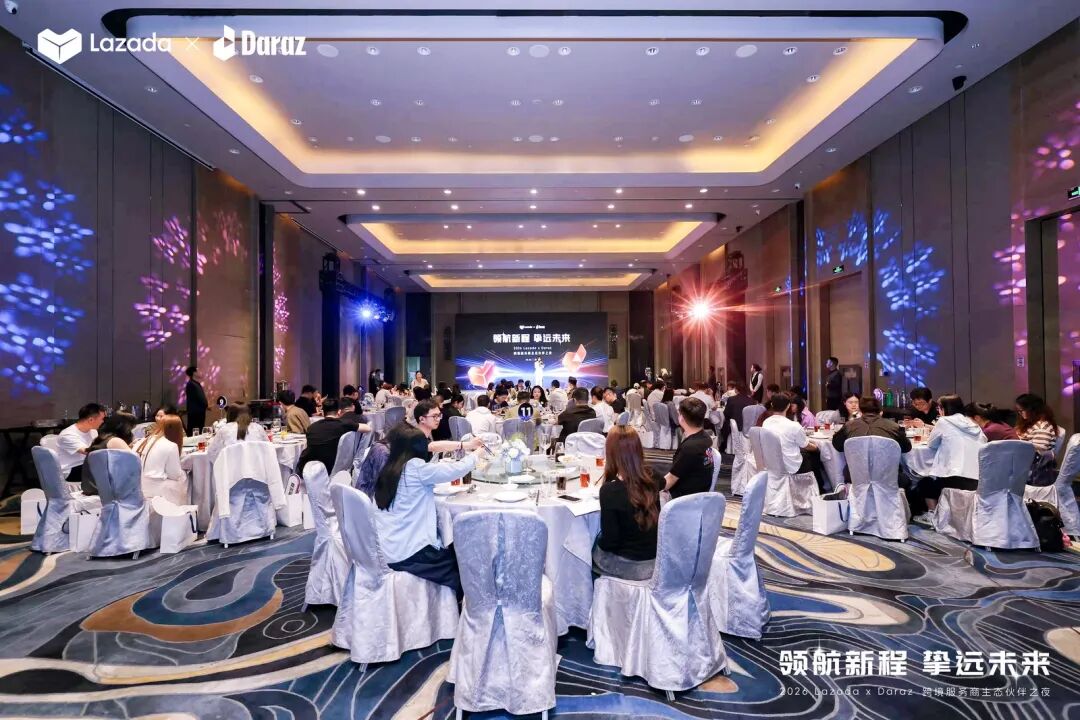 本次生态伙伴之夜以“领航新程,挚远未来”为主题,汇聚了Lazada、Daraz平台核心团队及数十家头部生态服务商。活动现场,Lazada正式发布了2026年跨境服务商生态合作计划,并为年度认证合作伙伴举行了隆重的授牌仪式。