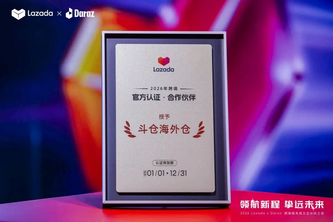 3月26日,深圳,【2026 Lazada×Daraz跨境服务商生态伙伴之夜】隆重举行。在这场汇聚平台官方与头部服务商的年度盛典上,斗仓海外仓凭借扎实的本地化履约能力、稳定的服务品质以及持续的生态贡献,正式获颁Lazada 2026年跨境官方认证合作伙伴荣誉称号。